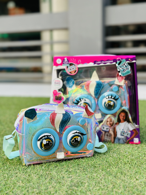 Інтерактивна сумочка реагує на дотики і кліпає оченятами, а ще видає звуки та співає пісні