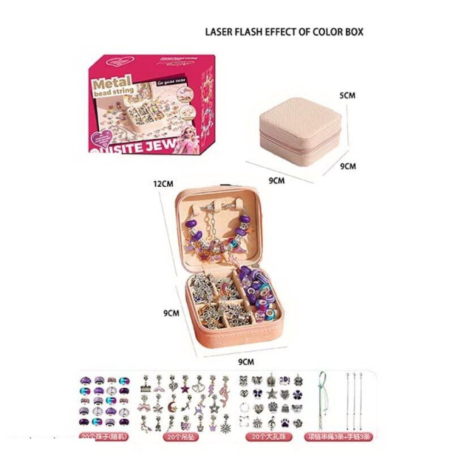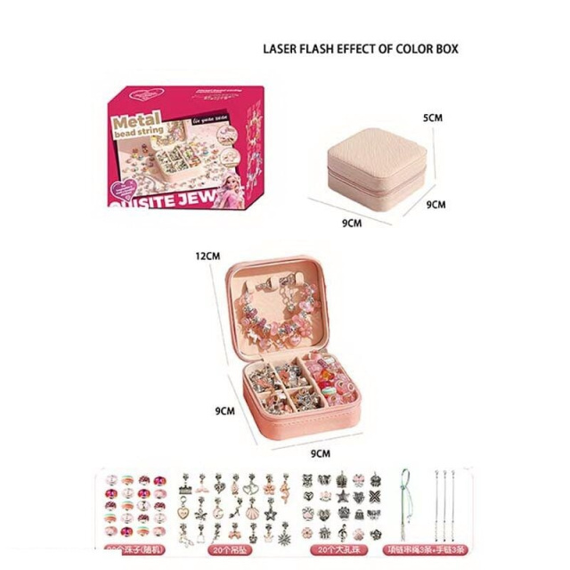 Набір прикрас на 66 деталей створюй оригінальні прикраси власноруч та будь неповторною! До набору входять сегментована шкатулка, металеві та текстильні основи для намиста і браслетів, шарми двох видів, а також - металеві фігурні підвіски. Шарми відрізняються один від одного за формою, розміром та забарвленням, що дозволяє відтворювати власні дизайнерські вподобання. Прикраси зручно зберігати у текстильній шкатулці. Особливості: - 66 деталей і текстильна шкатулка в наборі; - металеві та пластикові шарми; - металеві основи для браслетів; - текстильні основи для намиста; - металеві фігурні підвіски; - розмір шкатулки: 9х9х5 см