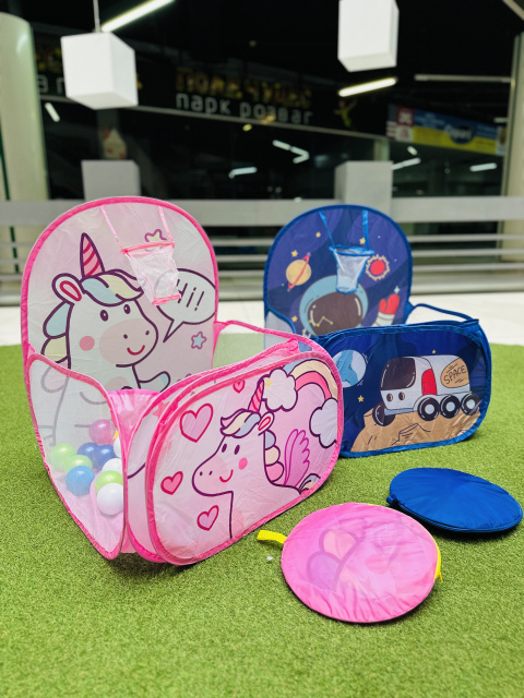 Дитячий намет— це функціональний і яскравий ігровий манеж, що стане чудовим місцем для активних ігор вдома або на вулиці. Його легко встановлювати й складати, він не займає багато місця та підходить як для приміщення, так і для відкритого простору. У комплекті є баскетбольне кільце діаметром 15 см, яке робить гру ще цікавішою та сприяє розвитку координації у дитини. Намет виготовлений із легких і безпечних матеріалів, не має гострих кутів і легко очищується від забруднень. Зручне пакування у вигляді сумки дозволяє брати його з собою на дачу, у подорожі чи в гості. Характеристики: Розмір намету: 117 × 98 × 73 см Розмір пакування: 29 × 29 × 6 см Вага: 1 кг Діаметр баскетбольного кільця: 15 см Пакування: сумка/