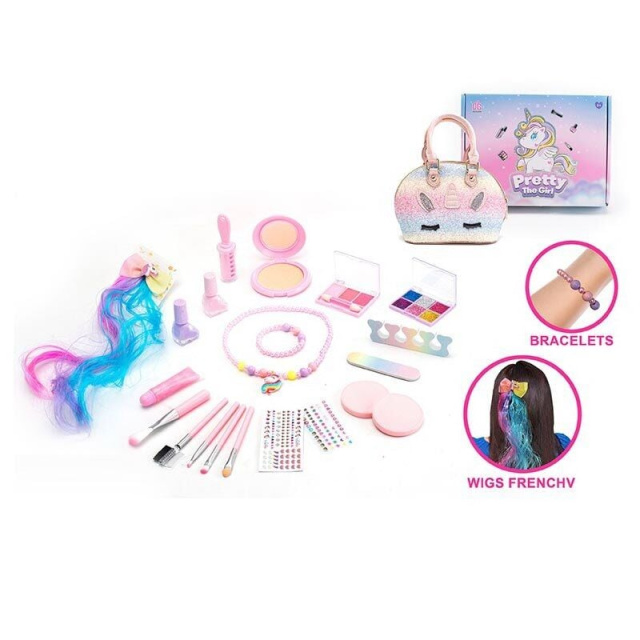 Милий набір відкриває перед юною стилісткою цілий світ краси – тіні та глітер, 2 лаки, розділювач для пальців та пилочка, пудрениця із дзеркальцем та ще багато цікавого.