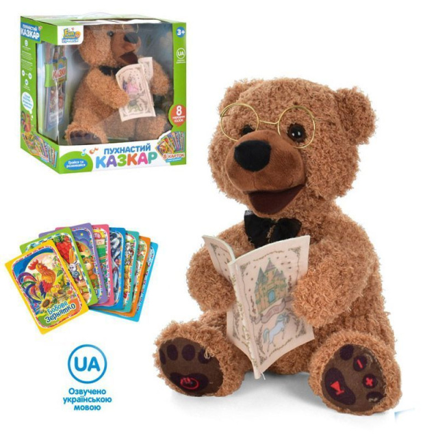 На лапках у Ведмедика є кнопки, за допомогою яких можна включати казку, переключати на наступну та ставити казку на пузу.