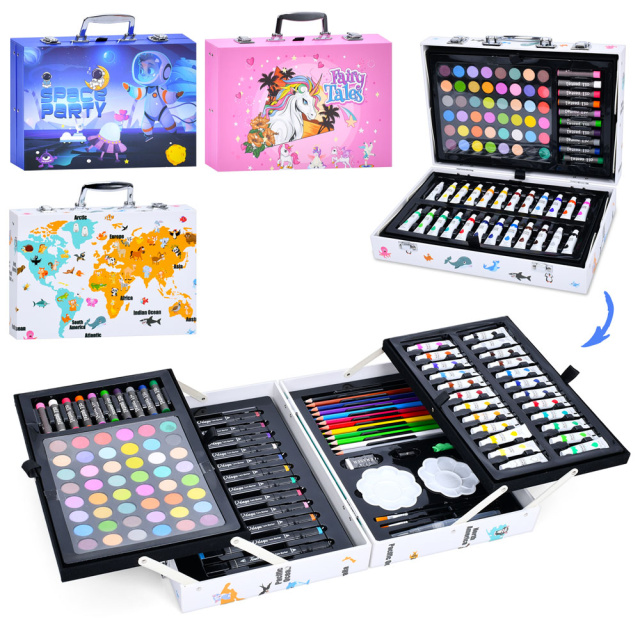 У ньому є всі випадки: кілька видів олівців, фломастери, фарби, дитина зможе спробувати всі стилі промальовування, при цьому ви не витратите зайві гроші.