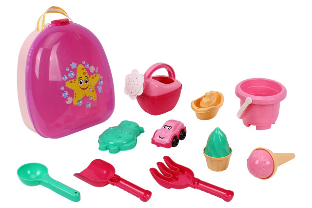 Набір для гри з піском у рюкзаку виконаний в рожевій гаммі кольорів - чудове поєднання комфорту, стилю та сучасних іграшкових трендів.