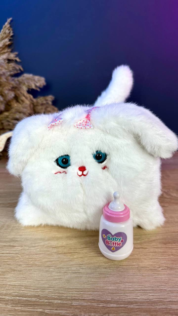 Впевнені, ви не зможете встояти перед цим милим інтерактивним цуциком! Він не лише виглядає дуже мило, а й має вражаючий функціонал. Просто погладьте тваринку по спині чи дайте їй її пляшечку, як вона відреагує та почне відтворювати звуки, махати хвостиком та кліпати очима.