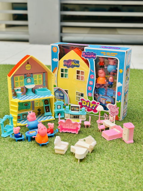 Великий двоповерховий будиночок відкриває двері у світ веселих сімейних пригод! Усередині – меблі, фігурки героїв та аксесуари для сюжетних ігор. Завдяки барвистому дизайну та безлічі деталей дитина зможе придумувати власні сцени з життя улюбленої родини. Набір сприяє розвитку фантазії, дрібної моторики та емоційного інтелекту.