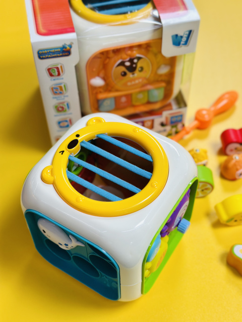 Багатофункціональний інтерактивний куб допоможе малечі не лише весело проводити час, але й розвиватись. Кожна грань куба пропонує нову гру.