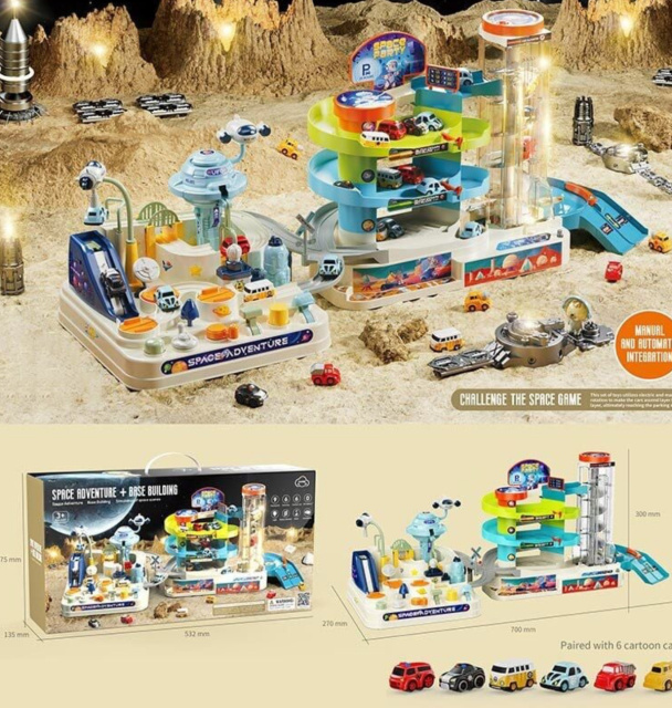 Тут вирує неймовірне автожиття! Іграшковий паркінг у поєднанні з чудовим функціональним треком запрошують дитину у світ пригод та незабутніх вражень. Щойно хоча б одна з машинок опиниться на звивистому шляху треку, її вже неможливо буде зупинити. Електричний ліфт вмить підніме її на верхній поверх, звивистий спуск з якого приведе малюка на шлях перешкод, подолати які можливо, лише скориставшись правильними важелями. На старт, увага, руш!