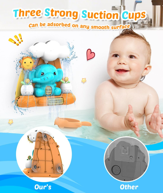 Іграшка для купання «Слоненя» зробить водні процедури для вашої дитини ще цікавішими та веселішими! Яскравий дизайн із хмаринкою, сонечком та веселкою створює справжню казкову атмосферу у ванні. Малюк із задоволенням буде лити воду у верхню частину іграшки, спостерігаючи, як вона стікає й запускає рухомі елементи. Іграшка легко кріпиться на плитку чи ванну за допомогою трьох присосок, що забезпечує стабільну стійкість під час гри. Це не лише розвага, а й чудовий спосіб розвивати дрібну моторику, координацію рухів та сенсорне сприйняття дитини. Слоненя обов’язково стане улюбленим другом під час купання!