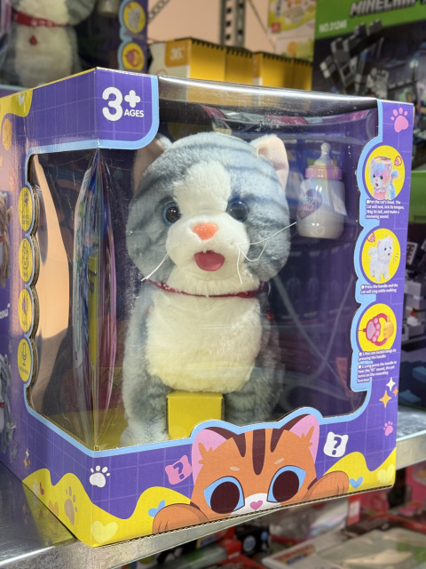 Улюбленець “Кіт”, ходить, облизує, пісні англ. мовою, сенсорні ділянки, запис та відтворення голосу, аксесуари, на повідці, в коробці