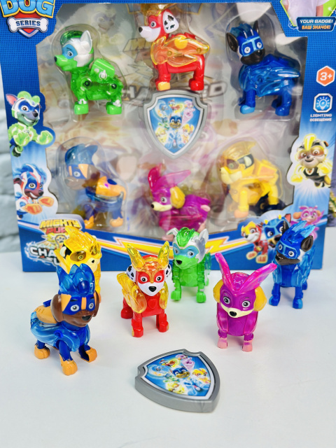 Набір включає фігурки усієї команди цуценят: Гонщика, Маршалла, Роккі, Кремеза, Зуми та Скай.
