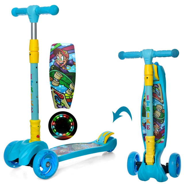 Дитячий триколісний самокат iTrike JR 3-060-11- MAXI - це дуже якісна модель міського самокату для дітей від 3х років в якій є все необхідне для чудового проводження часу та мандрівок Вашої дитини Модель виконона з якісного пластику, та має міцну метало-пластикову конструкцію Колеса (розмір передніх 120мм, задніх 80мм) безшумні виконані з матеріалу PU (підсвічуються) На задньому колесі встановлені ножні гальма Кермо регульоване (67-79см) має м'які гумови гріпси Самокат має складну конструкцію, зручно взяти з собою в авто або зберігати, займає не багато місця. Яскравий дизайн який не залишить байдужою жодну дитину