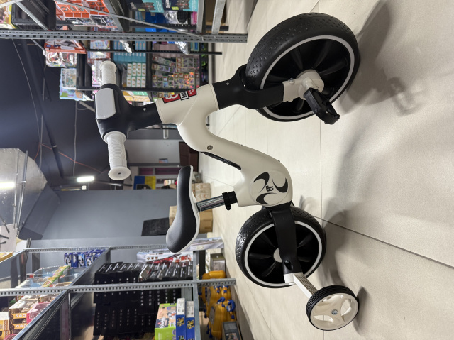 За допомогою кнопки педалі знімаються, а задні допоміжні колеса піднімаються та велосипед перетворюється на велобіг.