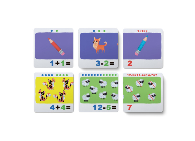 Набір "Учимося лічити. Додаємо та віднімаємо" включає 30 карток із яскравими ілюстраціями, на яких представлено 15 виразів на додавання та 15 виразів на віднімання в межах від 1 до 16. Набір призначено для підготовки дітей до школи. Граючись із картками, ваша дитина навчиться додавати та віднімати числа, а також відпрацює навичку усного рахування.