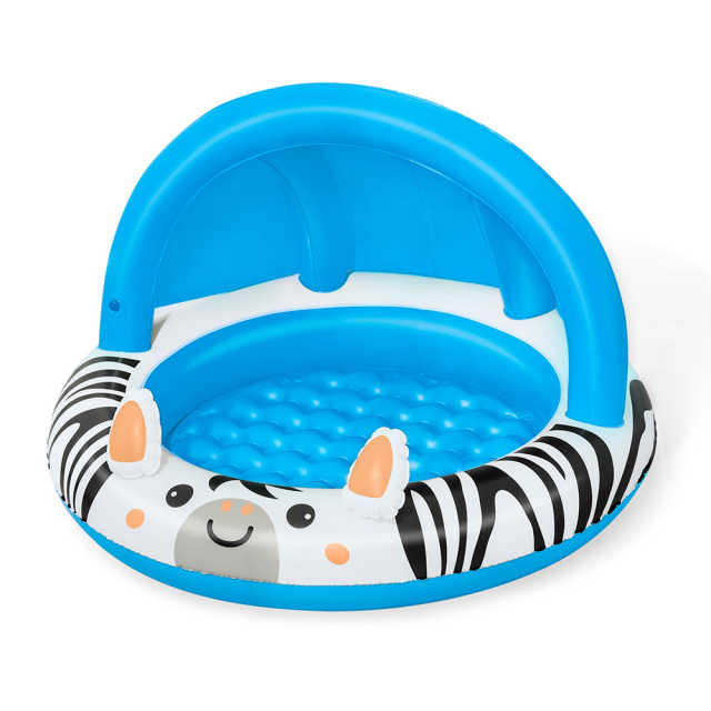 Басейн ідеально підходить для дітей віком від 2 років і старше і відрізняється зручним дизайном у стилі зебри та має надувний навіс із захистом від ультрафіолетового випромінювання, який забезпечує необхідний захист від сильного сонячного світла у спекотні дні.
