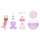 У набір входить: лялька-тотс; 2 елементи одягу; 1-3 аксесуари; рятувальний жилет; форма для хвоста; 2 пляшечки з гелем; кулька; тримач для ляльки;